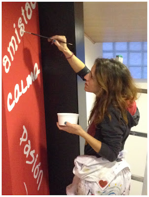Hace tiempo que estamos intentando terminar este proyecto, digo, estamos porque Ferny, mi amiga y alumna en el taller tuvo una maravillosa idea, que la pared de su chimenea no fuera de piedra sino de pared para después poder crear un maravilloso mural, que transmitiera todos los sentimientos que ella desea albergar para su casa recién estrenada y que conforman su filosofía de la vida un cuento con palabras..